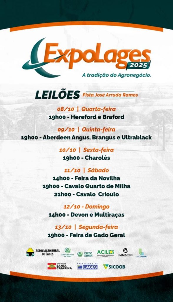 Programação completa Leilões EXPOLAGES 2025